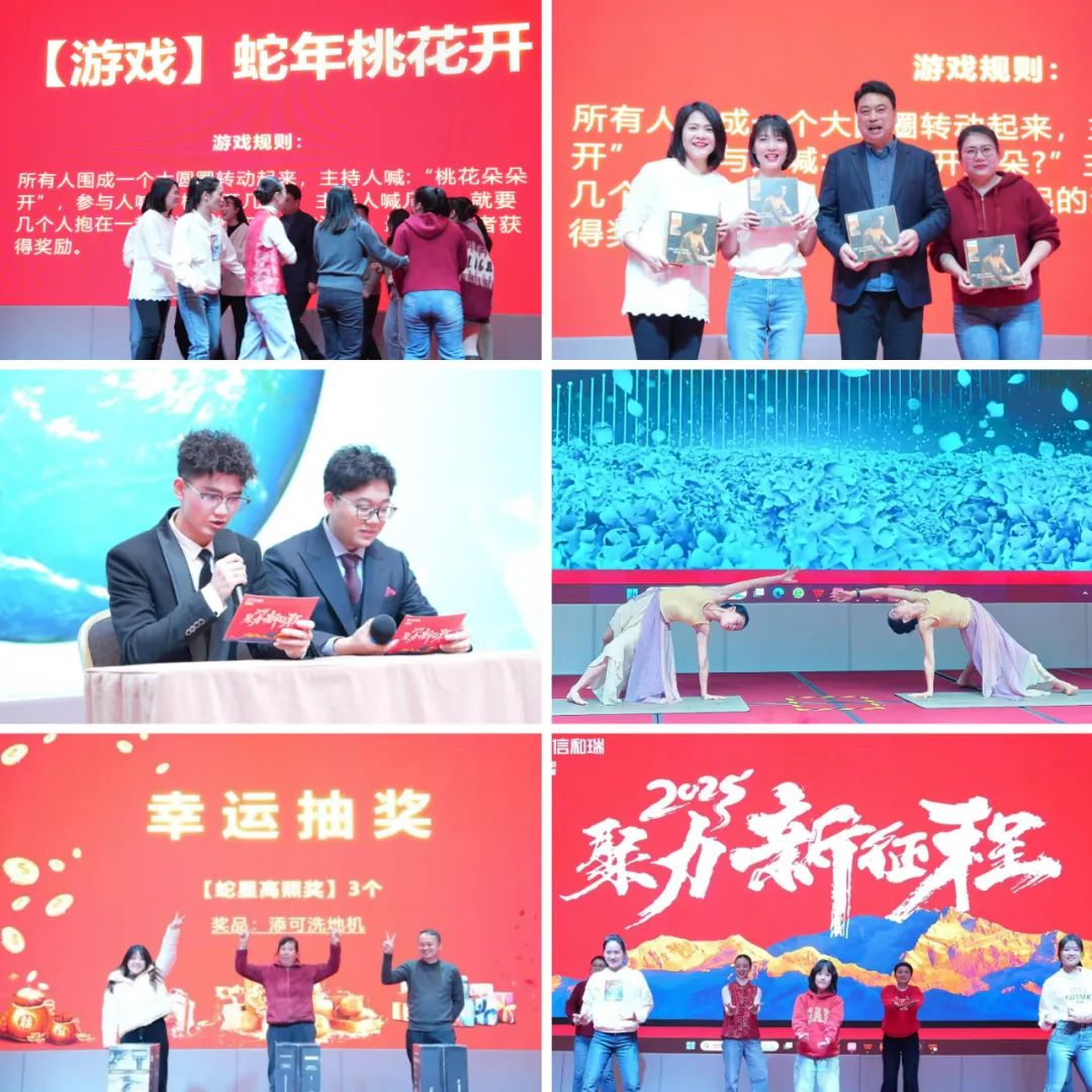 《新聞瞎播》幽默風趣、令人捧腹;《舞蹈瑜伽》曼妙婀娜、美不勝收。各部門團拜為大家送上真摯祝福,游戲環節讓溫情與快樂在歡聲笑語中進一步升華。精彩刺激的抽獎活動更是扣人心弦,引得現場掌聲、笑聲和歡呼聲此起彼伏。